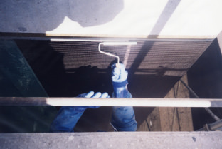 施工前にコンクリートの表面の状況を点検、調査します。外観調査、打音検査、鉄筋探査等を実施します。