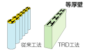 TRD工法は、地盤に挿入したチェーンソー型のカッターをベースマシンと接続し、横方向に移動させて、溝の掘削と固化液の注入、原位置土との混合・撹拌を行い、地中に連続した壁を造成するものです。H鋼などの芯材を挿入し、地下掘削時の土留め止水壁として適用します。さらに、液状化対策や遮水壁、汚染物質の封じ込めなど、様々な用途への適用も可能です。